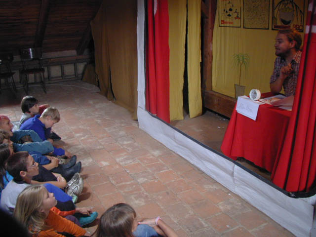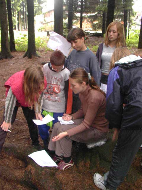 Když jsme se ráno probudili a zjistili, že prší byli jsme rádi, že jsme již opět v táboře a také jsme byli rádi, že nám počasí v uplynulých čtyřech dnech přálo. Stalo se již dobrou tradicí, že nám počasí po dobu puťáků vydrží a ani letošní rok nebyl výjimkou. Kolem deváté hodiny déšť sice ustal, dopoledne však byla jedna přeháňka za druhou. Zvolili jsme proto program v budově. Uspořádali jsme hru BINGO. Na posledním snímku je první výherce při kontrole čísel před výplatou.