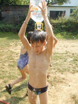 Dnes byl opět parný letní den. Teplota přesáhla 30 stupňů. Pro osvěžení jsme odpoledne již potřetí uspořádali velkou vodní bitvu. Koho zrovna nepolili, poléval se sám.