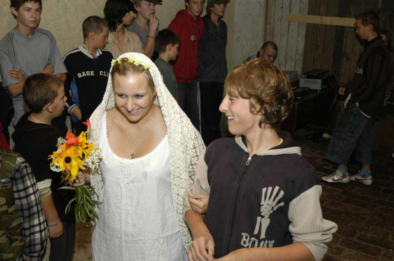 Po jarmarku se konaly táborové svatby v improvizovaném kostele za doprovodu varhanní hudby DJ O'Holase a po nich se již všichni s chutí vrhli na hostinu. Zlatým hřebem celé hostiny byla na ohni pečená šunka, která se ohřívala celé odpoledne a její vůně byla přímo nesnesitelná.