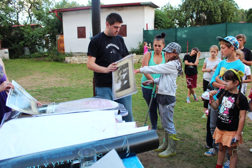 Dnes jsme se vzbudili do posledního dne, který strávíme na táboře celý. Proto nás čekalo náročné balení, kterým jsme strávili velkou část dopoledne. Druhou část dopoledne děti trávili přípravou jejich živnosti na pouť a vedoucí úklidem tábořiště a naší základny. Mezitím se nám v kuchyni připravovala k obědu výborná čočka, na které jsme si pochutnali a bez potřeby poledního klidu jsme zahájili táborovou pouť. Aby si děti vydělali galeony, za které můžou nakupovat dobroty a dárečky v našem krámku, nabízeli vedoucím i sobě navzájem různé služby a produkty. Proto jsme si mohli vzájemně koupit květiny, nechat se potetovat nebo namasírovat, posílat si psaníčka, koupit si pití, nechat se bavit vtipy a mnoho dalších věcí. Po pouti následovali svatby, kde měli táborové lásky možnost naplno projevit své city, a svazky byly oslaveny společnou hostinou. Naše přežírací tradice opět nabyla velkých rozměrů a nemohl chybět ani všemi oblíbený kus – vepřová kýta. Krom pořádného fláku masa jsme měli i spoustu ovoce a zeleniny, domácí koláčky… Aby nás na noc nebolela bříška, roztančili jsme se na diskotéce a šli příjemně unaveni spát, někdo dřív a někdo o něco později.