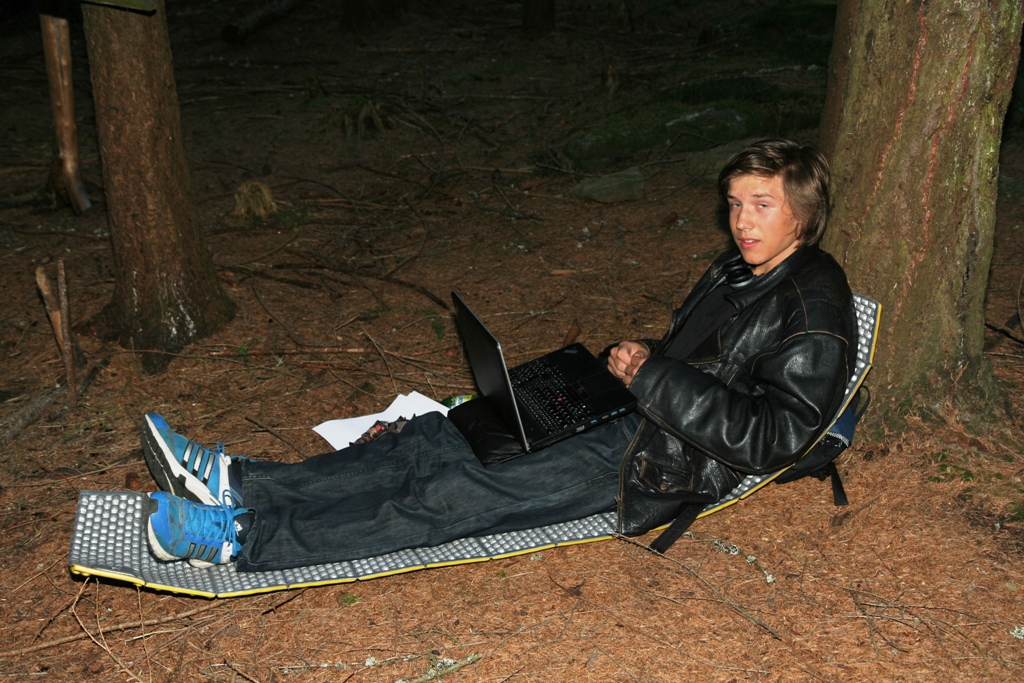 Dnes jsme měli budíček posunutý až na 9:15, protože jsme den předtím přišli ze super bojovky, kterou pro nás vedoucí pečlivě připravili. Už ráno jsme měli jasno – bude jasno :-) Posnídali jsme rohlíky s paštikou a zapili teplým čajem. Mezi tím co jsme se připravovali na odchod do lesa na dopolední hru, někteří vyvolení půjčili mobily a MP3 přehrávače vedoucím, aby je nabili a nahráli na ně soubory, které pro ně připravil Ondra.