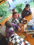 V čas večeře jemně sprchlo, ale nic co by nás zarazilo. Většinu večerních kroužků jsme jednoduše přesunuli dovnitř budovy staré kamenické školy.