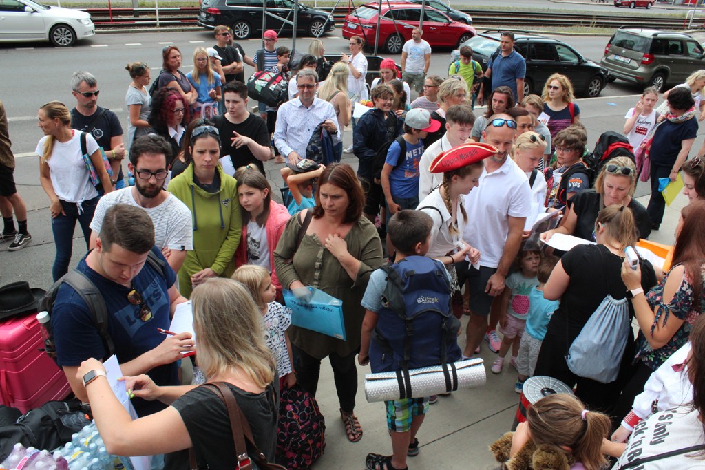 Na rozdíl od roku minulého nás slunce tentokrát při odjezdu tolik netrápilo a dokonce ani s autobusy nenastaly žadný čachry machry. Po změření teplot a vybrání všech dokumentů nezbývá nic jiného než se čapnout kufry a krosny, naládovat je do autobusu a pak čapnout i děti a naládovat je na sedačky. Krátce po třetí hodině je mise úspěšná a vyrážíme směr Kamenice.