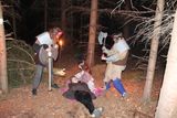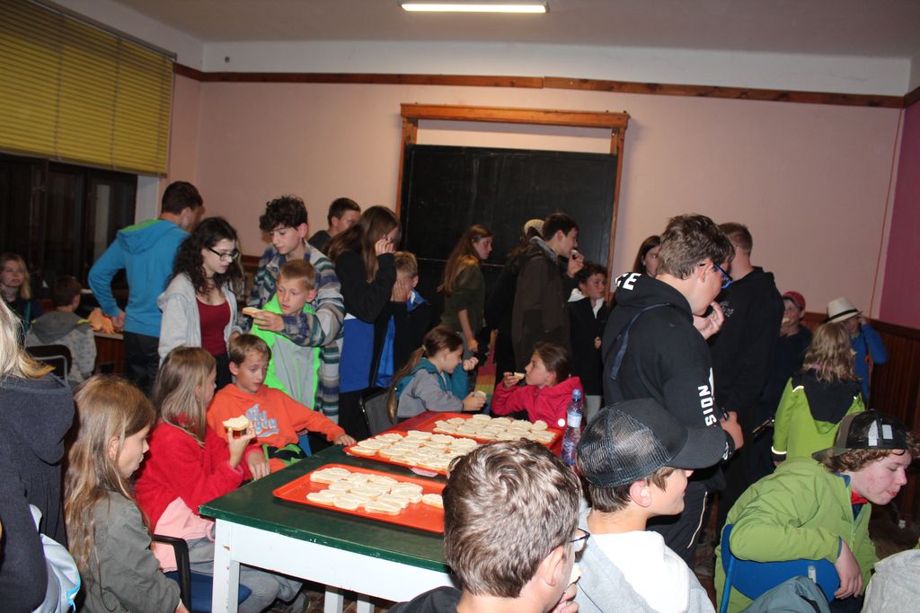 Opět jsme vstali do krásného, byť trochu chladného dne. Ptáčci zpívali, slunce svítilo a my jsme věděli, že dnešní den bude plný radosti. Odstartovali jsme den rozcvičkou a následně si dali k snídaní grandiózní chlebec s delikátní šunkovou pěnou, která pohladila naše duše. Na táboře nás není málo, a proto abychom si mohli dát k obědu brambory, bylo potřeba přiložit ruce k dílu a oškrábat 20 kilo brambor. Oškrábané brambory se čistí ve vodě a my můžeme vyrazit na dopolední etapovku. Náš tábor však není pouze zábavného charakteru, je i edukativní, a proto se etapovka zabývala zdravovědou, abychom byli schopni v nouzi zachránit lidské životy. Když jsme se vrátili zpátky do tábora, již na nás čekalo vepřové na mrkvi. A samozřejmě přílohou byly naše skvostně oškrábané brambory, které naše duše spasily. Nasyceni noblesním gastronomickým zážitkem jsme usoudili, že bude moudré využít poledního klidu k nalezení zenové rovnováhy meditací. Když jsme dosáhli zenu, byl čas vyrazit za dalším dobrodružstvím. Naše spokojené žaludky jsme pohladili sladkým pokrmem v podobě sušenky a byl čas jít na odpolední program. Odpolední program byl náročnějšího ražení a my běhali jak bohem políbeni. Hra se jmenovala „latríny“ a navzdory svému absurdnímu názvu byla inspirující. Vraceli jsme se pozitivní náladou osvíceni a v táboře na nás čekala majestátní vajíčková pomazánka vytvořená z lásky naší milé kuchyně. Po večeři následovaly kroužky – od deskových her až ke sportovním aktivitám. A když už jsme se domnívali, že je čas jít spát, překvapila nás neočekávána mystická noční bojovka. Oděni do brnění z vůle a odvahy jsme se vydali do temného lesa plného mýtických nestvůr. Zachránili jsme Talionovu rodinu a zoceleni se vrátili zpátky do loží očekávajíc další záviděníhodná dobrodružství.