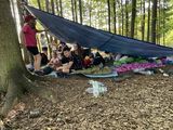 Sobota 21:33: Puťáky jsou v plném proudu, děti jsou spokojené, přístřešky postavené, stružky vykopané a večeře v přírodě snědené. Zatím to vypadá, že by nás srážky mohly úplně minout, ale pro každý případ jsou u dvou stanovišť auta a další dva řidiči jsou v táboře připraveni vyrazit.