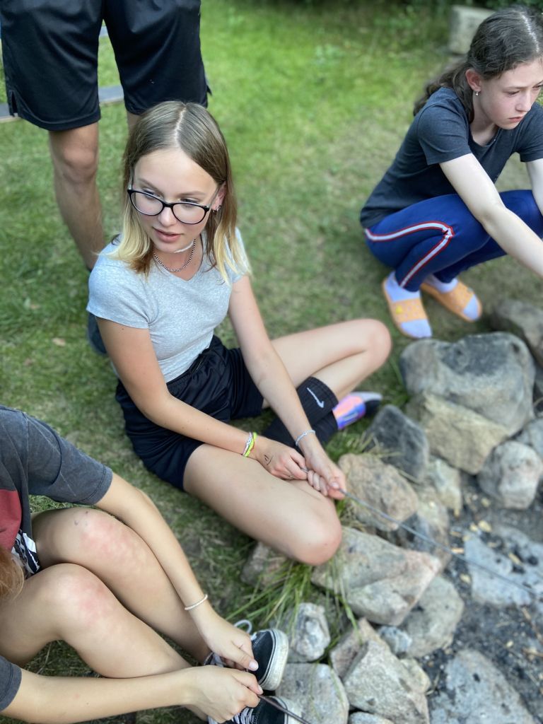 Dnešní příjemný den jsme završili buřty opečenými na ohni a táborákem. Myslím si, že při zpívání Bedny od whiskey, Buráků nebo Bláznovy ukolébavky jsme museli být slyšet až u Vás v Praze.