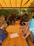 Dopolední program byl celkem jasný. Samozřejmě jsme museli vymyslet to, co z oddílu dělá správný oddíl. Tedy jméno, pokřik a erb. Po kreativně náročné práci jsme našim žaludkům poslali poctivý hovězí vývar a omáčku z rajských jablíček s těstovinami.