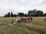 Po výborné snídani jsme se odebrali na blízkou louku, kde jsme nastartovali své výkonné motory v podobě našich nožiček a začali hrát hru Formule. Účelem hry je dopravit vedoucí po vytyčeném okruhu rychleji než tým, se kterým se závodí.