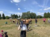 Po ranním nástupu následovala zdravá svačinka ve formě jogurtu s kousky ovoce. Pak už jsme se všichni hromadně vydali z tábora na dopolední hru. Cílem této cesty byla nedaleká louka, kam jsme zamířili hrát Famfrpál, tedy, spíše jeho lehce upravenou verzi.