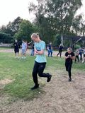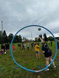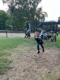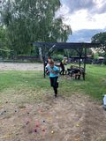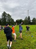 Oloupané brambory jsme nechali v táboře a vydali jsme se na nedalekou louku, kde probíhala dopolední hra famfrpál, inspirovaná filmy o Harrym Potterovi. Neodradil nás ani déšť, který nás přepadl uprostřed hry. Děti si pohotově oblékly pláštěnky a odhodlaně pokračovaly v zápasech poté, co Venca vysvětlil pravidla. Po několika napínavých zápasech jsme se vrátili do tábora.