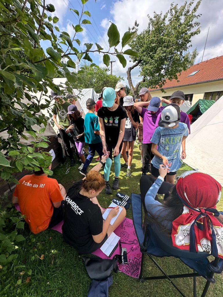 Pak už byl čas oběda, kuchaříčci si pro nás připravili hovězí vývar a svíčkovou s houskovým knedlíkem. Po náročném obědě a zaslouženém poledním klidu jsme se po oddílech vydali na etapovku po pravoúhlé mapě. Každý oddíl dostane mapu, kde jsou vyznačená všechna rozcestí a cesty, po kterých trasa nevede a jejich úkolem je trasu s doprovodem vedoucího správně projít po těch cestách zbylých.