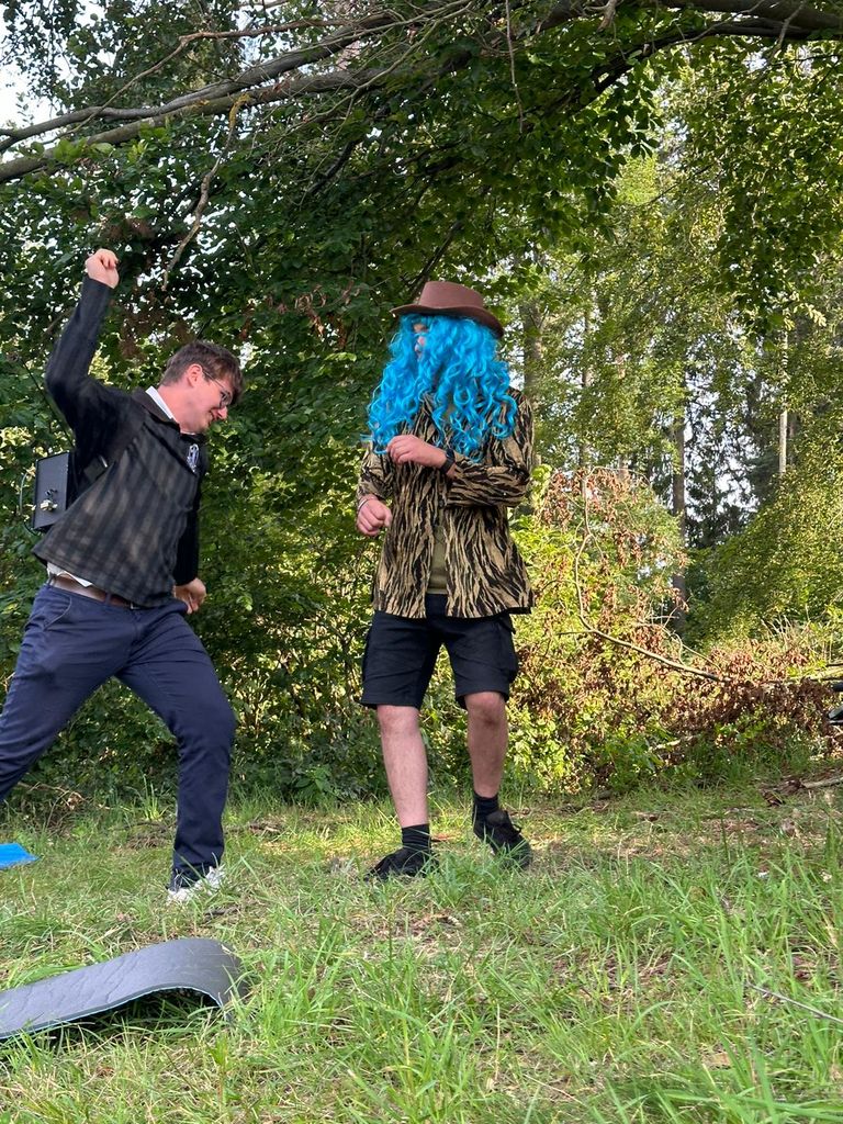 Kvůli odpolednímu programu jsme ukončili polední klid o trochu dřív, ale stejně jsme si stihli řádně odpočinout. Po nástupu se děti po oddílech vydaly na závěrečnou růžovou etapovku o délce asi 8 km, kde na ně čekaly různé otázky ohledně názorů na tábor a zároveň dvě scénky, kde se Wednesday dozvěděla pravdu o Chrisovi a řediteli a s Příšerákem si navzájem vyznali city.
