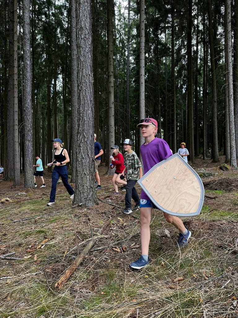 Na dopolední hru jsme vyšli do lesa na hru jménem Hadrákovka. Každý oddíl si v lese udělal z klacků kruh a dovnitř si dal tři své vlajky (metičky). Každý má na začátku hry nárok na tři hadráky, se kterými může zabíjet členy jiných oddílů. Cílem hry je nenechat se trefit hadrákem a na konci mít ve svém kruhu co nejvíce vlajek, jež se kradou mezi oddíly. Zpátky v táboře jsme si umyli ručičky a sešli se v jídelně na oběd. Od našich kuchařů jsme dostali brokovnicovou polévku a buřtguláš.