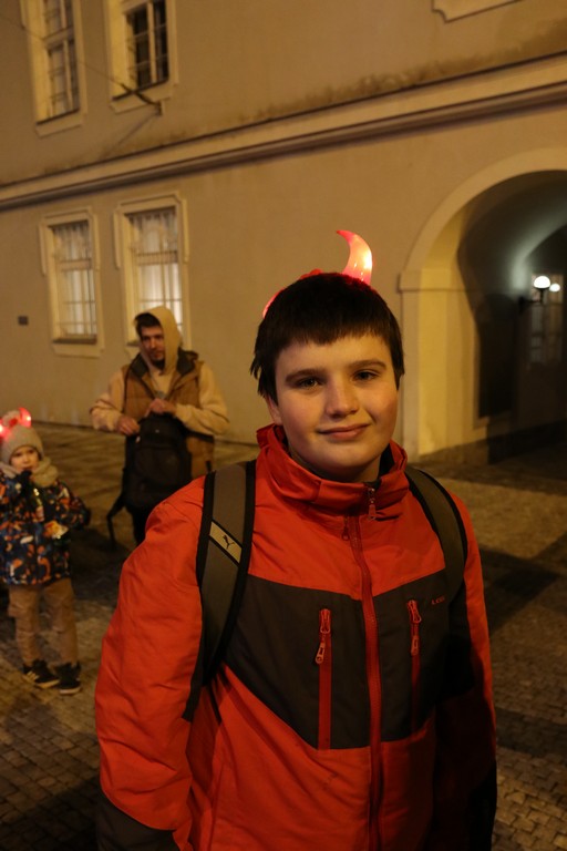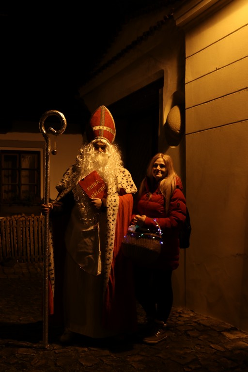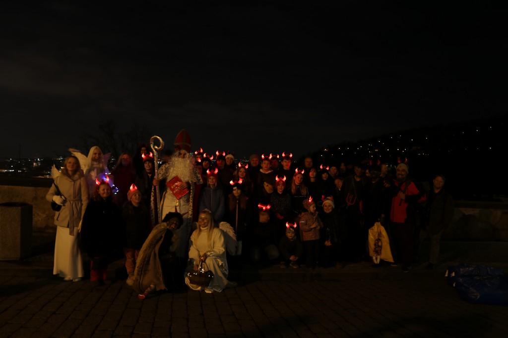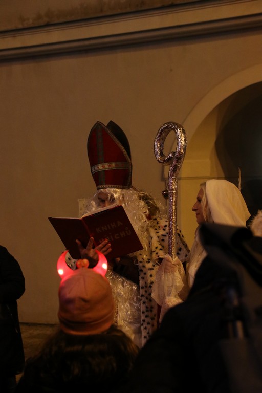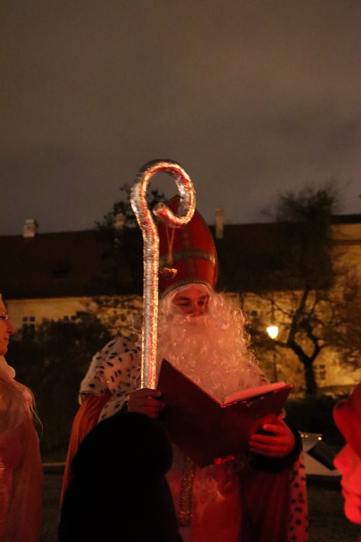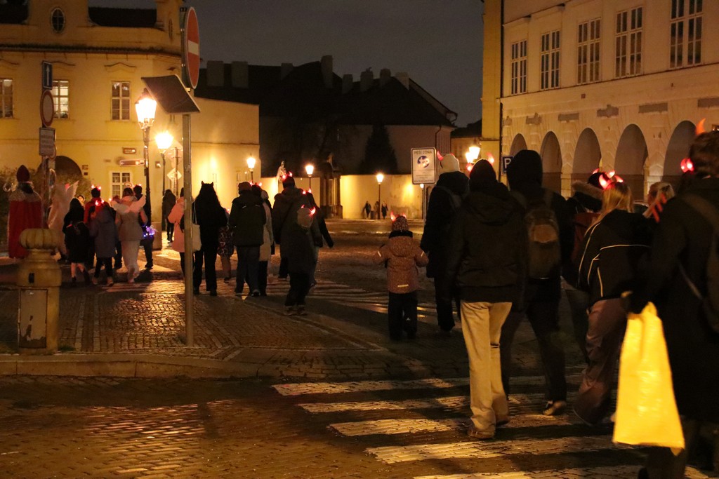 Mikuláš se rozhodl pro sraz na Pohořelci, kde jsme dětem rozdali čertovské rohy a vydali se na cestu. Trasa měla několik zastavení, u kterých nám Mikuláš pověděl zajímavosti o daném místě nebo fakta spojená s adventem. Vedl nás krásnými uličkami přes Nový Svět a Pražský hrad až ke kostelu sv. Mikuláše na Malé Straně. Tam musely děti Mikulášovi říct jednu zajímavost, kterou si z cesty zapamatovaly a přidat i básničku. Celkem bylo 12 zastávek: Pohořelec, Černínský palác, Loreta, Nový Svět, Martinický palác, Schwarzenberský palác, pomník T. G. Masaryka, katedrála sv. Víta, bazilika sv. Jiří, obelisk jako památník padlým v první světové válce, Nerudova ulice a kostel sv. Mikuláše.