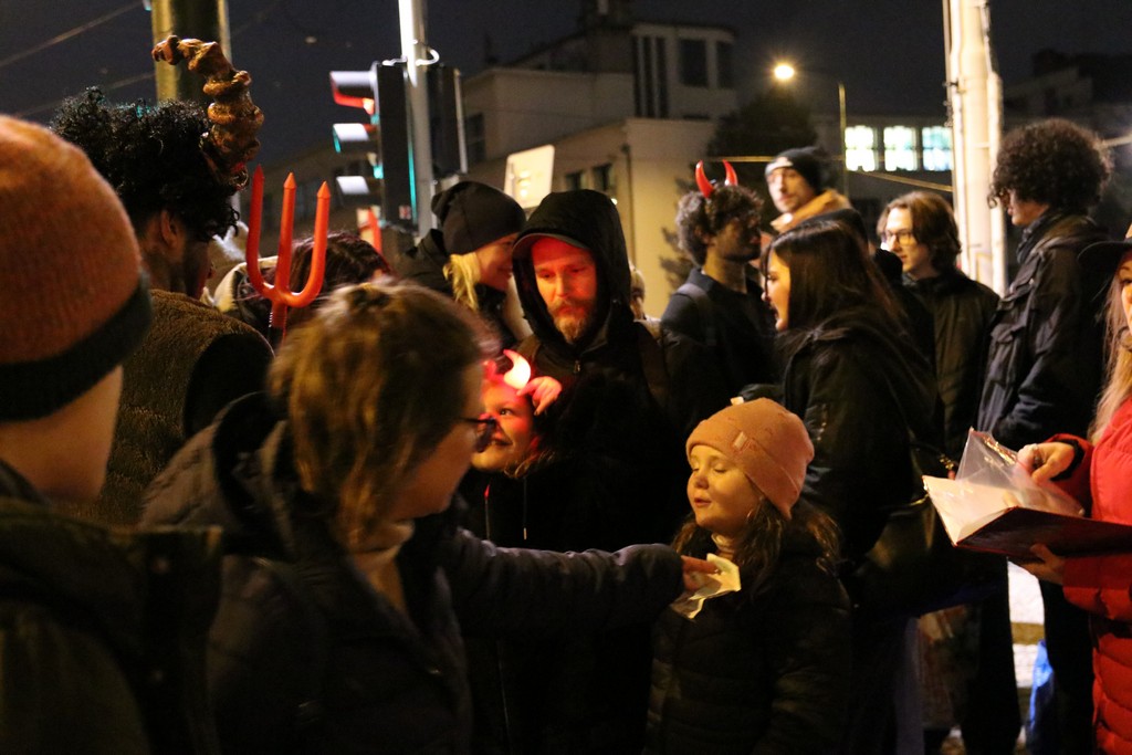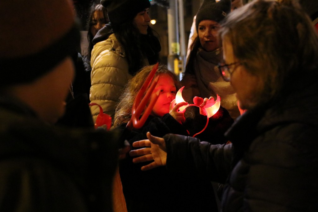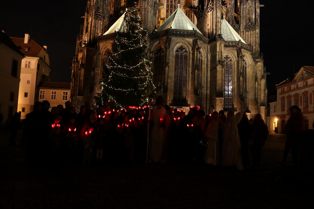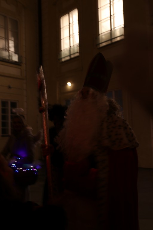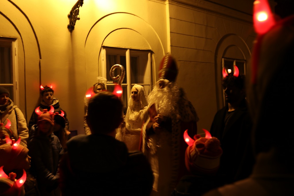 Mikuláš se rozhodl pro sraz na Pohořelci, kde jsme dětem rozdali čertovské rohy a vydali se na cestu. Trasa měla několik zastavení, u kterých nám Mikuláš pověděl zajímavosti o daném místě nebo fakta spojená s adventem. Vedl nás krásnými uličkami přes Nový Svět a Pražský hrad až ke kostelu sv. Mikuláše na Malé Straně. Tam musely děti Mikulášovi říct jednu zajímavost, kterou si z cesty zapamatovaly a přidat i básničku. Celkem bylo 12 zastávek: Pohořelec, Černínský palác, Loreta, Nový Svět, Martinický palác, Schwarzenberský palác, pomník T. G. Masaryka, katedrála sv. Víta, bazilika sv. Jiří, obelisk jako památník padlým v první světové válce, Nerudova ulice a kostel sv. Mikuláše.