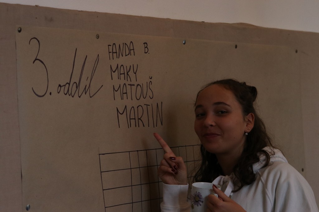 K večeři jsme si pochutnali na srbském rizotu, které sklidilo úspěch. Následoval večerní program s názvem tvorba oddílové identity, kde jsme společně vymýšleli, co náš oddíl vystihuje a posílili jsme týmového ducha.