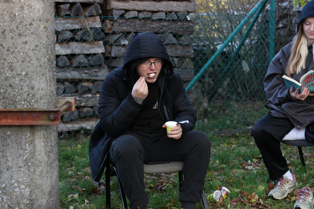 Dnešní den na podzimkách začal příjemně - k snídani jsme si pochutnali na rohlíku s lučinou a teplém čaji, který nás krásně zahřál po chladném ránu. Po snídani následovala ranní scénka, která nás hned naladila na dobrou náladu a přinesla spoustu smíchu.