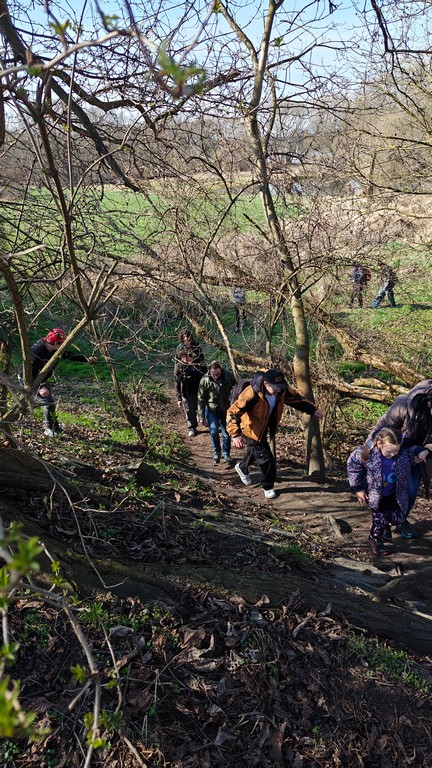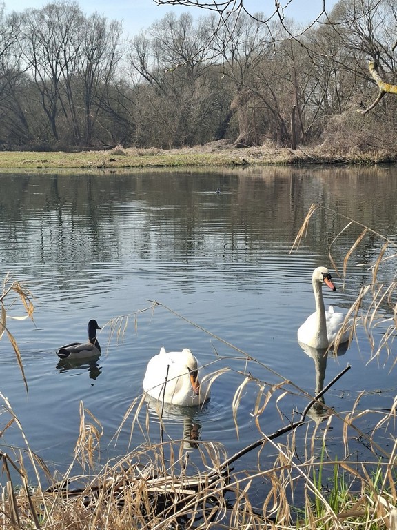 Na vlakové zastávce Praha-Komořany nám Šíša řekl něco málo o historii Morany – symbolu zimy, a zde také začala naše trasa. Po cestě jsme minuli nejen spoustu běžců, cyklistů a různých jiných sportovců, ale také Komořanské tůně, u nichž naše pozornost na chvilku zůstala, stejně tak jako u elegantních labutí, které plavaly u jejich břehů.
