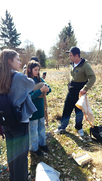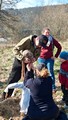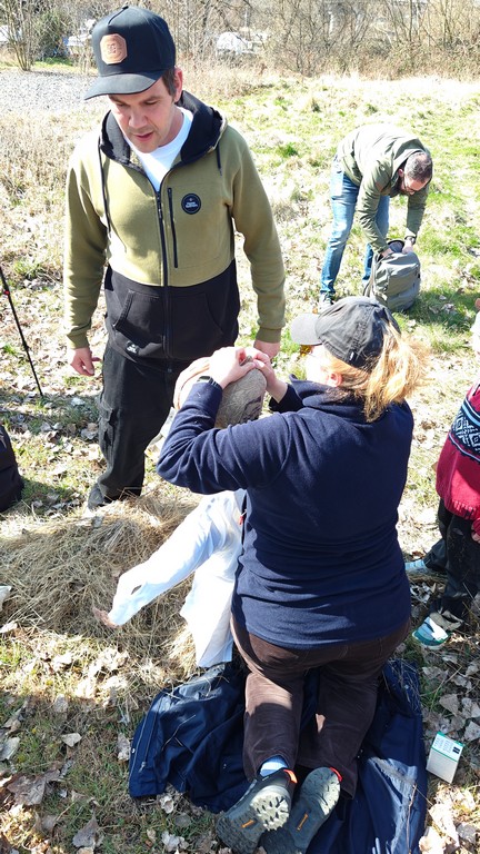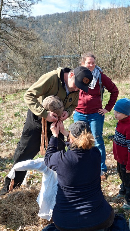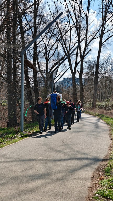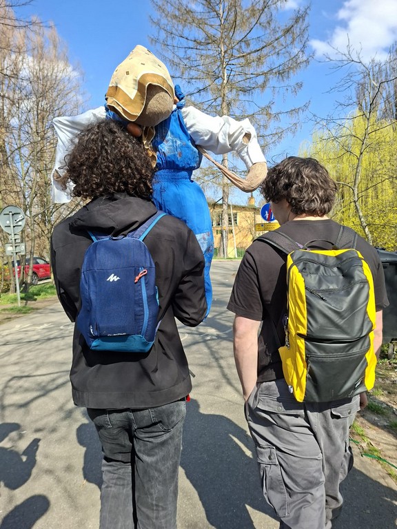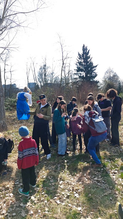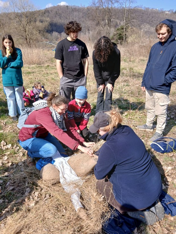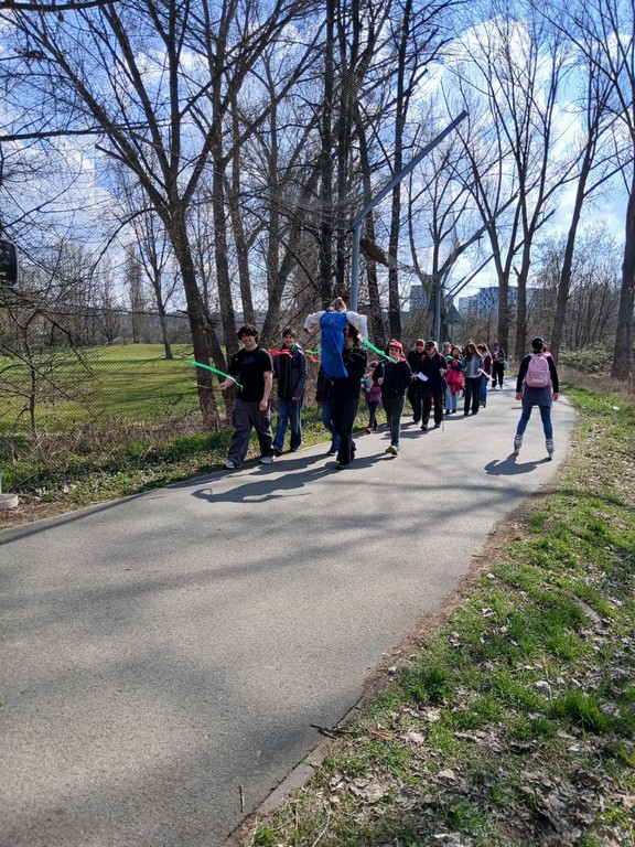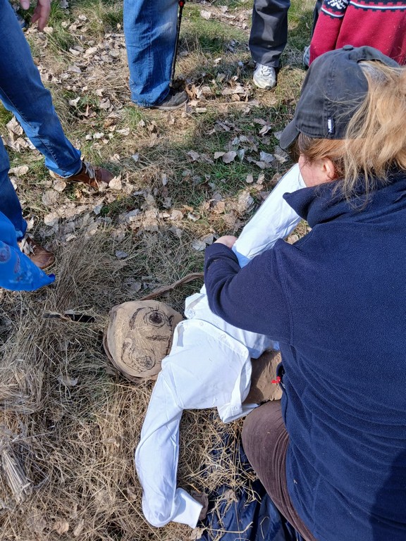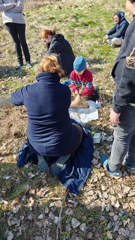 A je to tady, přišel čas na výrobu Morany! Když jsme dorazili na ideální místo, zprvu nám Šíša vyprávěl něco více o Moraně, ale netrvalo dlouho a všichni se s vervou pustili do přípravy. Bylo potřeba nasbírat dostatek slámy, svázat základní kříž ze dvou klacků a následně samotnou Moranu vyrobit a vyzdobit. A musím říct, že se nám opravdu vydařila. Také jsme z živých větviček a krepového papíru vytvořili líta a naučili se „říkadla“, která jsme během zbývající cesty k ohništi společně zpívali.
