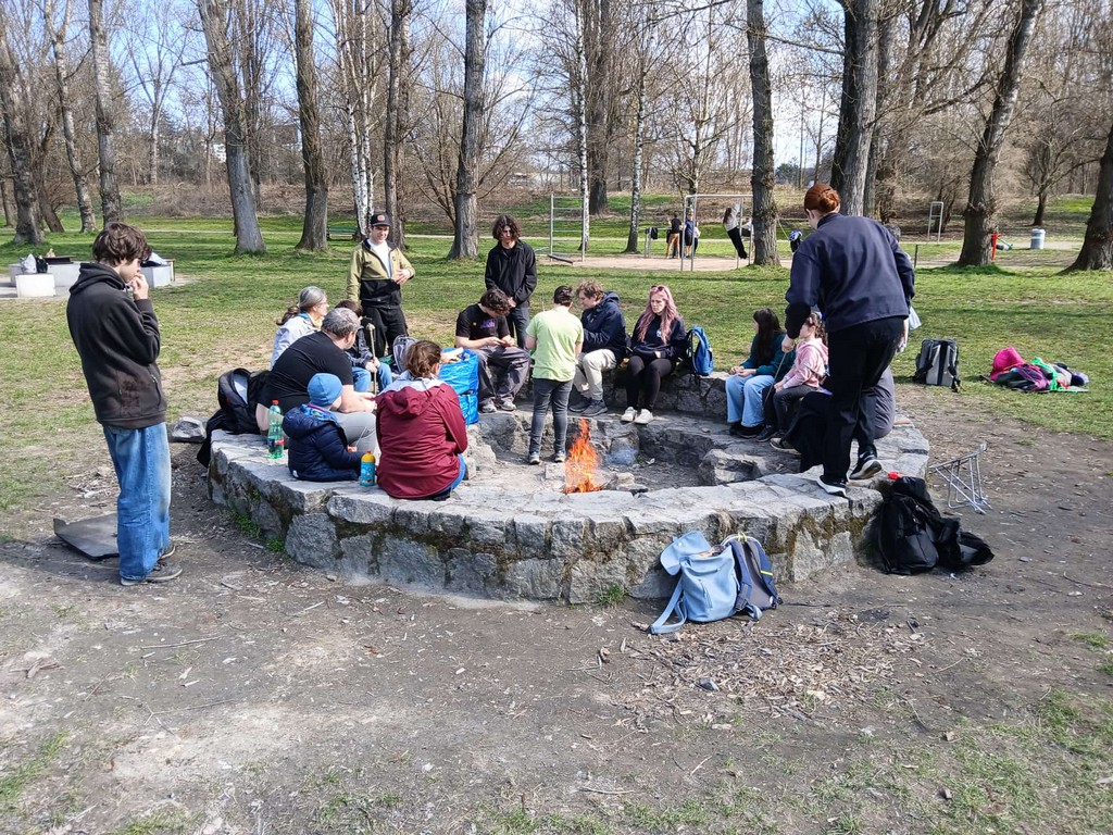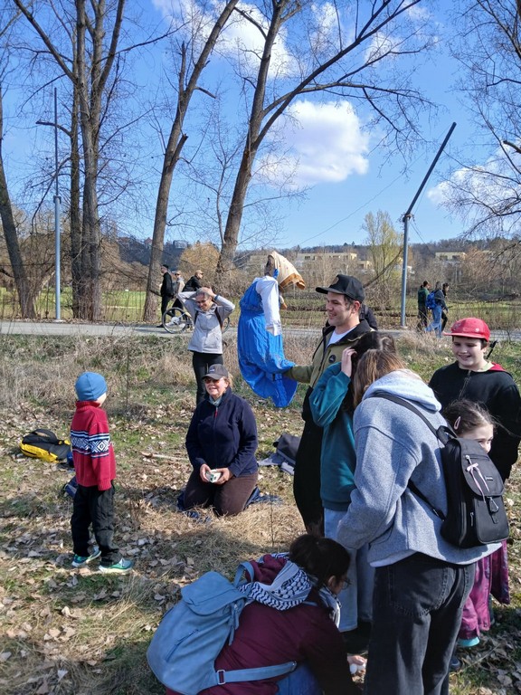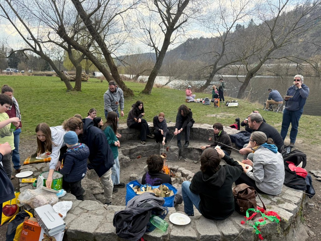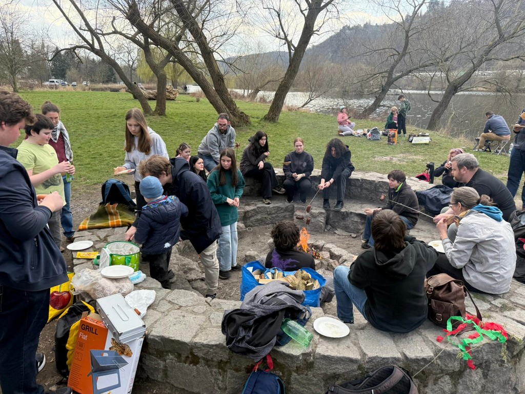 Veselá, jarní atmosféra se prolínala vzduchem a nám tak cesta ubíhala mnohem rychleji. A nadešel zlatý hřeb výletu – vhození Morany do Vltavy a utopení zimy (ale protože jsme správní pionýři, hned po skončení akce jsme Moranu vytáhli z řeky a vyhodili ji, aby po ní nezůstalo zbytečné znečištění a odpad). Došlo i na slíbené opékání buřtů, a tak si každý dal, co hrdlo ráčí, u klidně praskajícího ohně.
