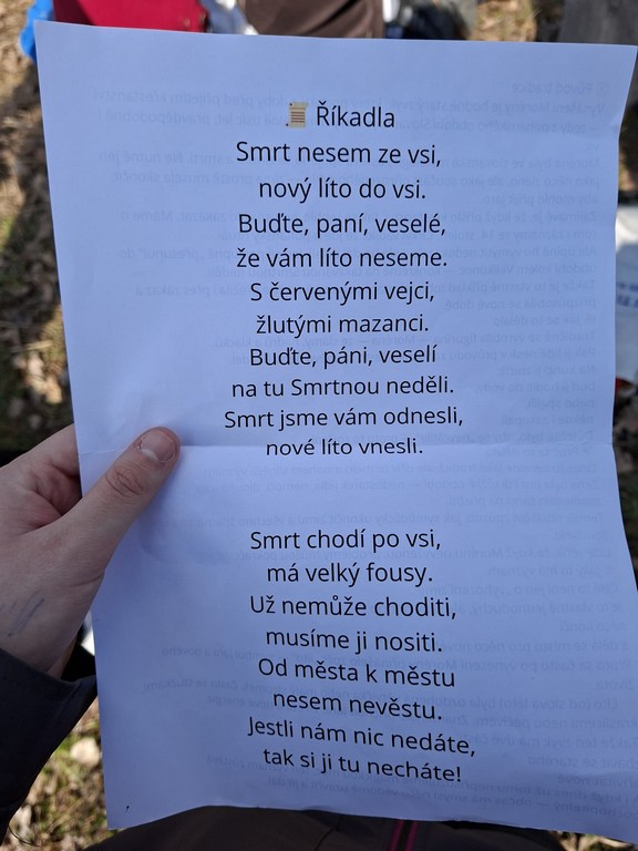 V první jarní neděli 22. března se naše kamenická parta opět sešla, aby vyprovodila letošní zimu naší starou českou tradicí – vynášením Morany.