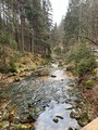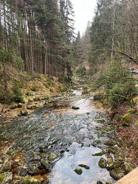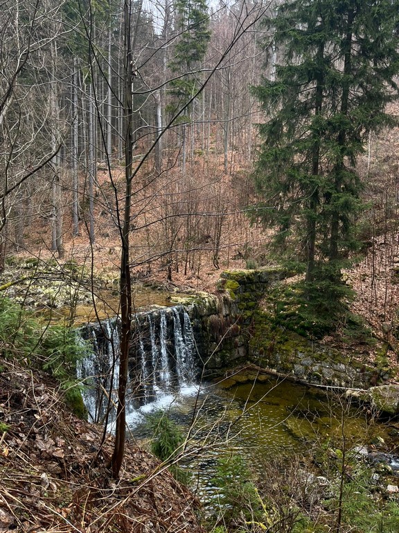 Před námi bylo téměř 15 km. Vyrazili jsme kolem jedenácté s tím, že nejprve navštívíme Protrženou přehradu. V průběhu cesty, po odchodu z Protržené přehrady, nás nemile překvapil déšť a lehké náledí v určitých úsecích silnice. Netrvalo dlouho a narazili jsme na stánek s občerstvením. Ale déšť neustával, a tak se vedoucí rozhodli, že se vrátíme zpět na chatu.