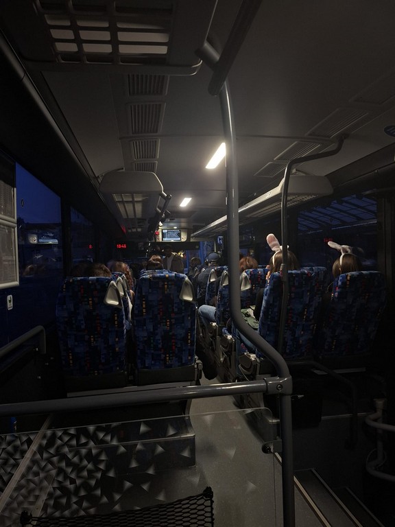 Jak děti, tak vedoucí dorazili na autobusové nádraží na Černém mostě, kde byl určený sraz v 18:00. Po vyřízení veškerých dokumentů a příchodu všech účastníků, jsme se mohli přesunout k autobusu. Když autobus přijel, každý dostal svou jízdenku a hurá na cestu!
