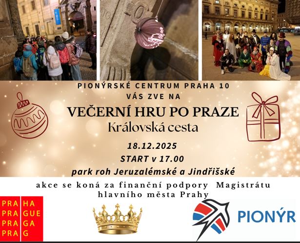 Jak se už dávno stalo tradicí, poslední akcí v tomto roce bude Večerní hra Prahou. Večerní hra proběhne ve čtvrtek 18. prosince 2025. Start proběhne v parku na rohu ulic Jeruzalemské a Jindřišské od 17 hodin. Pro přihlášení kontaktujte Jirku Velíška na emailu chorche(zavináč)skalka(tečka)cz nebo telefonicky na čísle 603 382 725. Kontaktní osoba na startu bude náš Fanda 739 814 615. Trasa by měla být cca na 2 hodiny, proto, prosíme, zvolte vhodné oblečení podle předpovědí počasí.