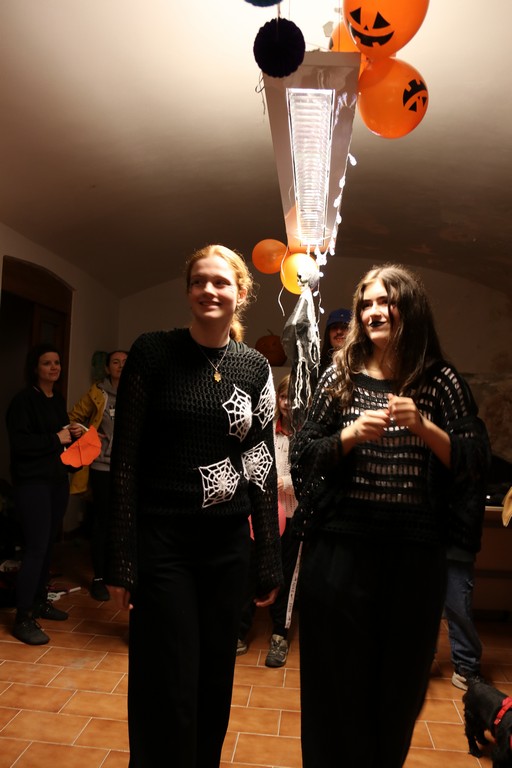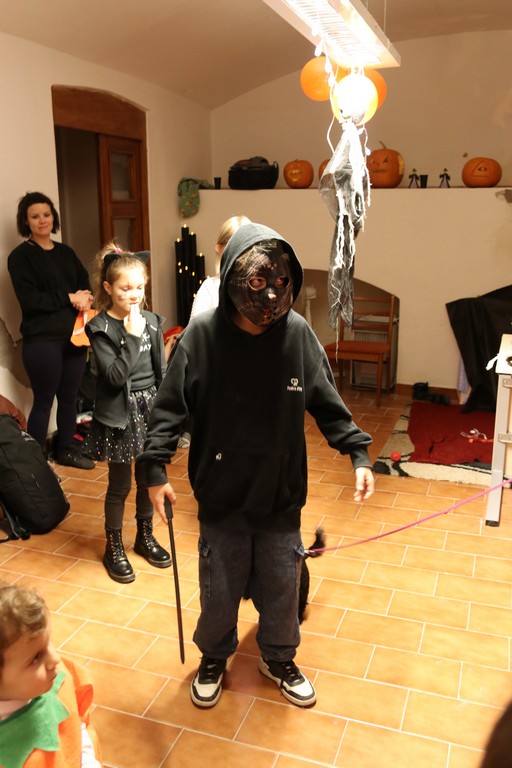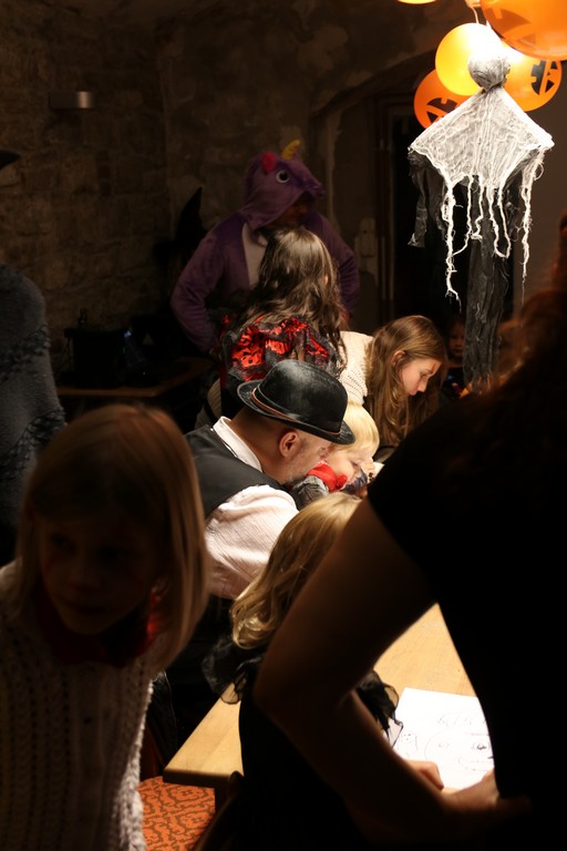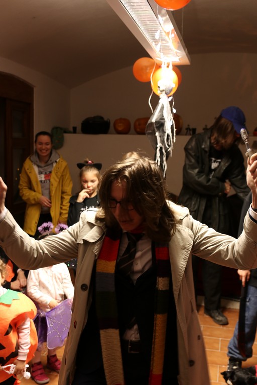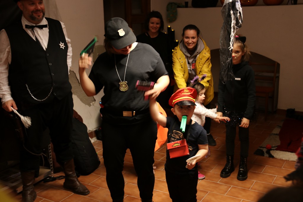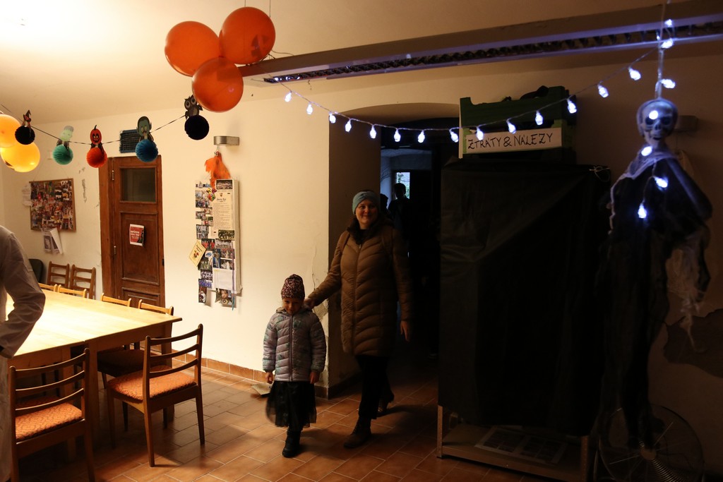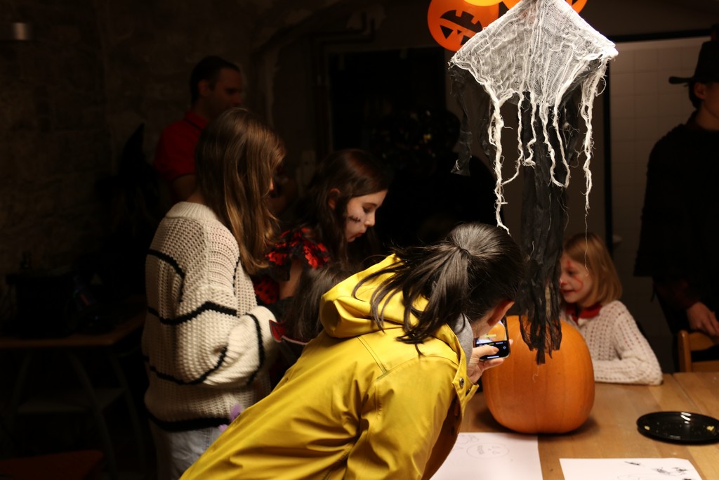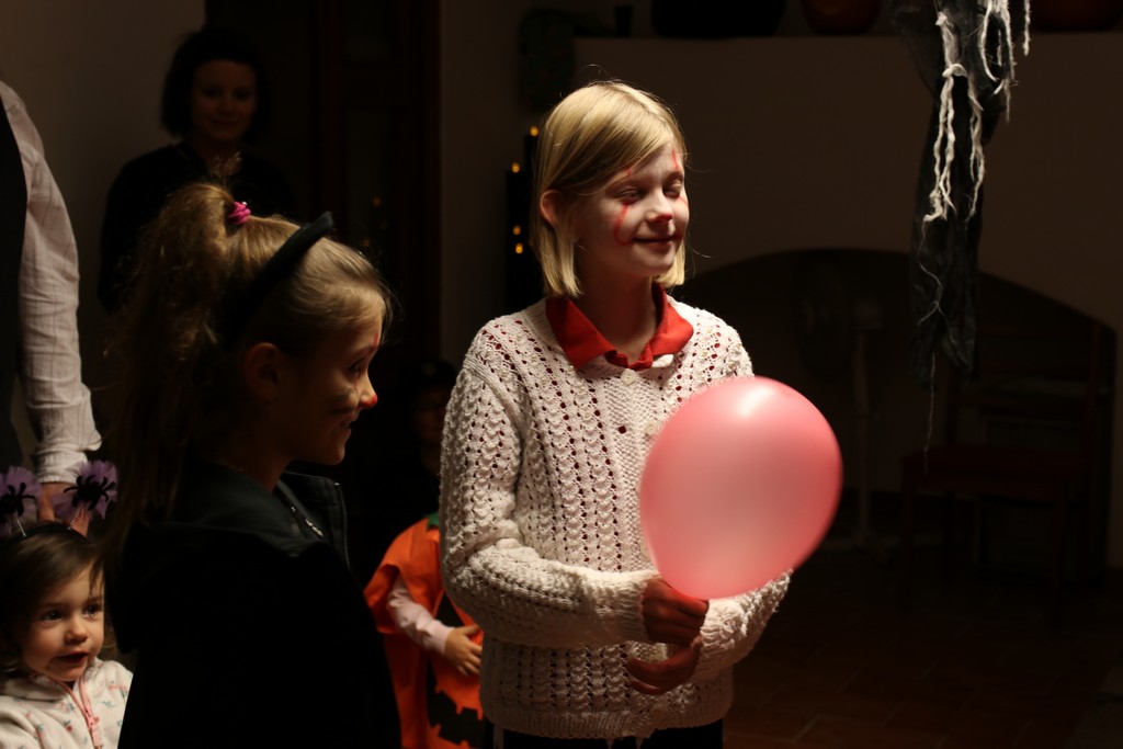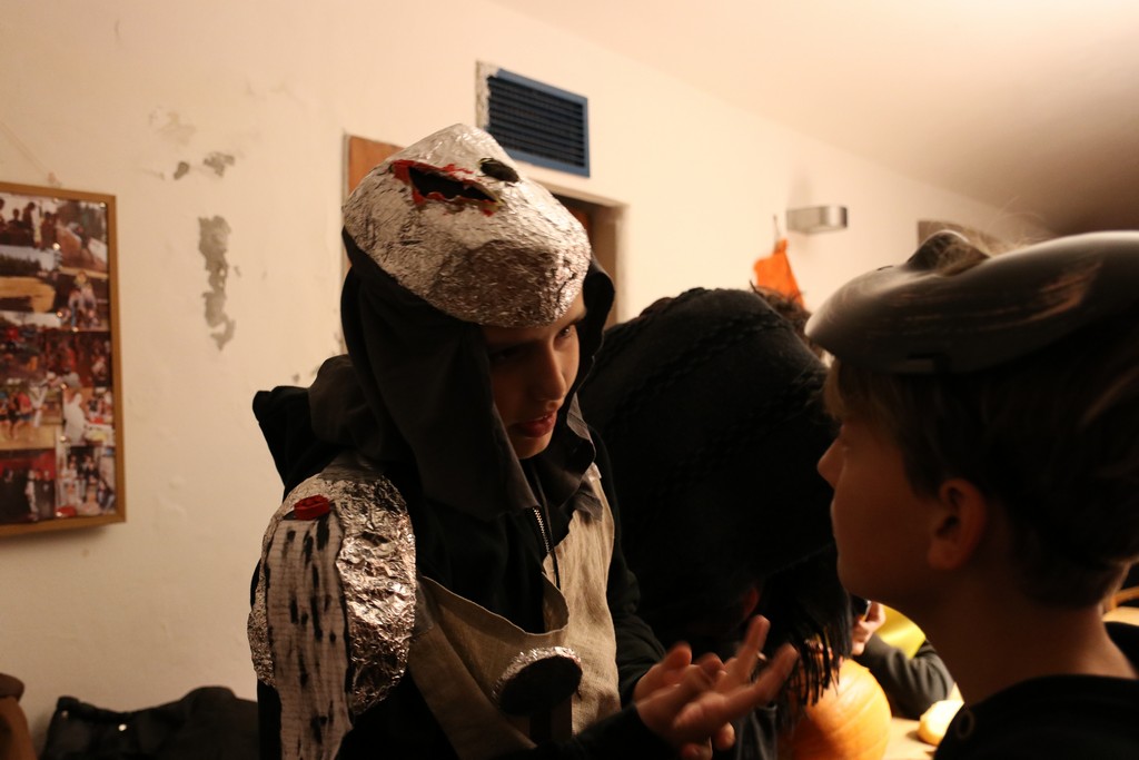 Je čtvrtá hodina odpolední posledního listopadového dne, a to znamená kamenický Halloween! Naše klubovna, která se proměnila v dům hrůzy, se plní různými strašidly a pohádkovými bytostmi. Samozřejmě není kam spěchat – za lehkého zvuku hudby je nejprve potřeba se připravit na přicházející program. K tomu napomáhá nepřeberné množství sladkostí a jídla i jakási červená kapalina, ve které plave cosi připomínající oční bulvy – budeme jen doufat, že svou zcela nápadnou podobnost pouze připomínají.