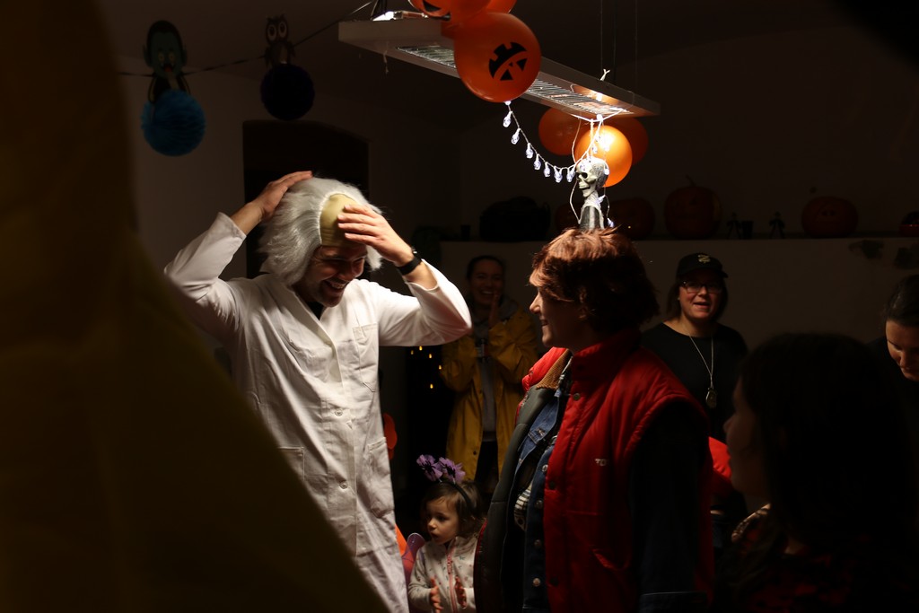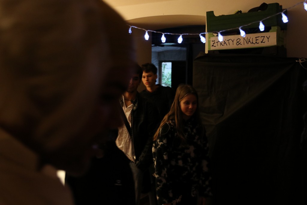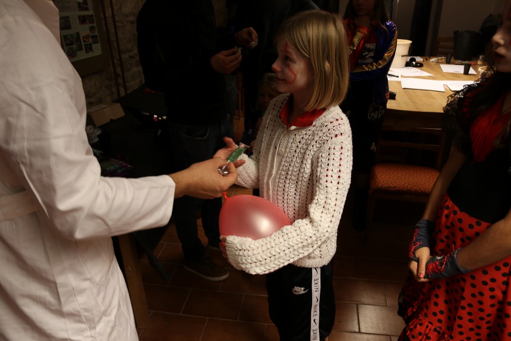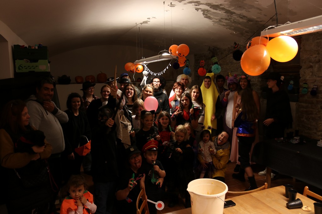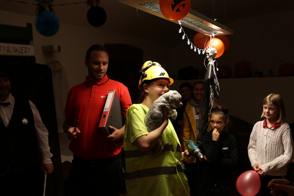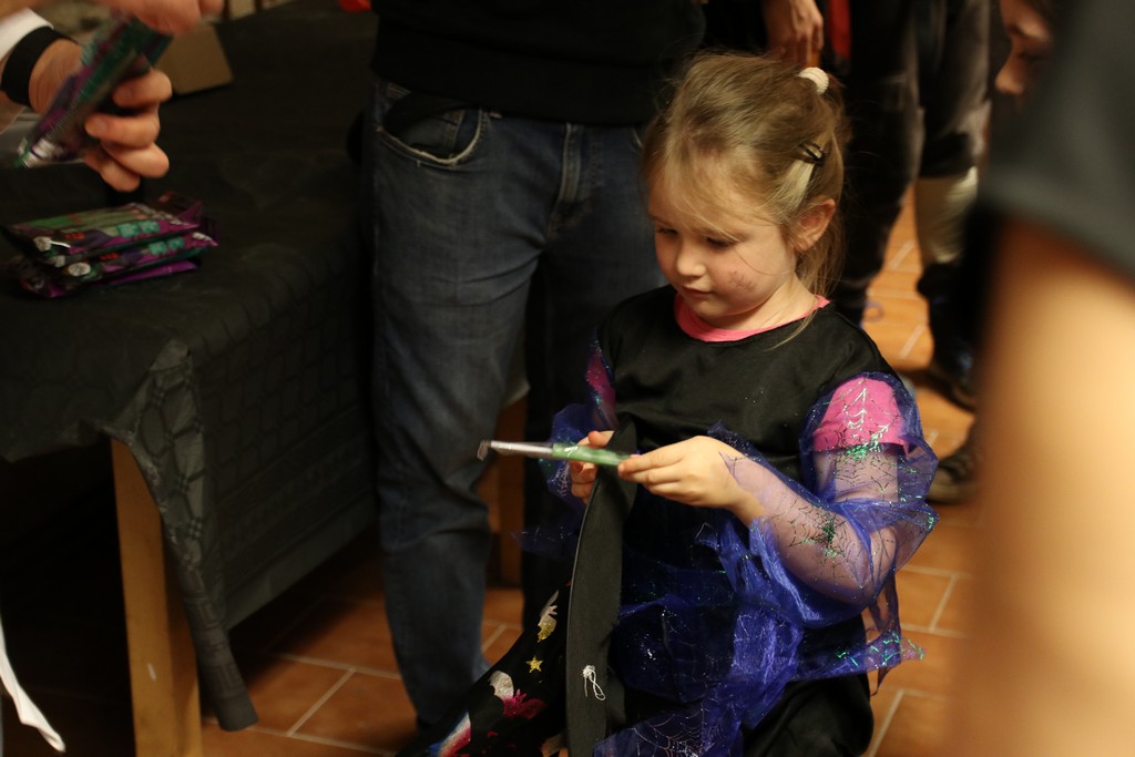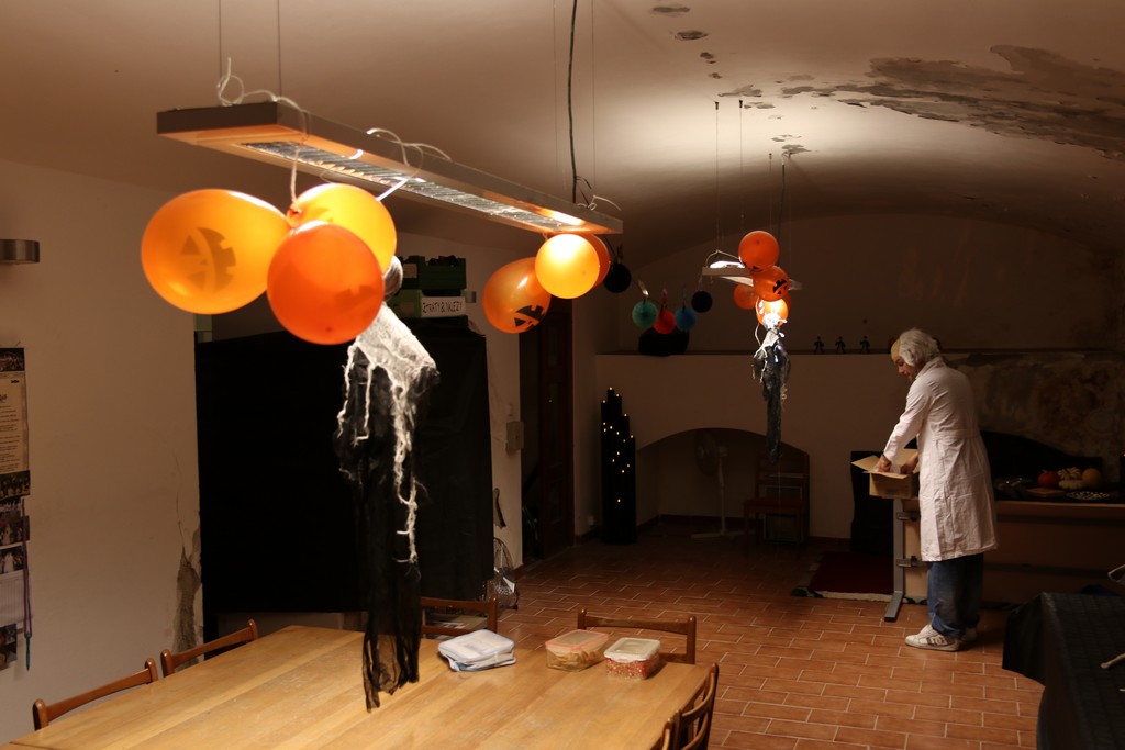 Je čtvrtá hodina odpolední posledního listopadového dne, a to znamená kamenický Halloween! Naše klubovna, která se proměnila v dům hrůzy, se plní různými strašidly a pohádkovými bytostmi. Samozřejmě není kam spěchat – za lehkého zvuku hudby je nejprve potřeba se připravit na přicházející program. K tomu napomáhá nepřeberné množství sladkostí a jídla i jakási červená kapalina, ve které plave cosi připomínající oční bulvy – budeme jen doufat, že svou zcela nápadnou podobnost pouze připomínají.