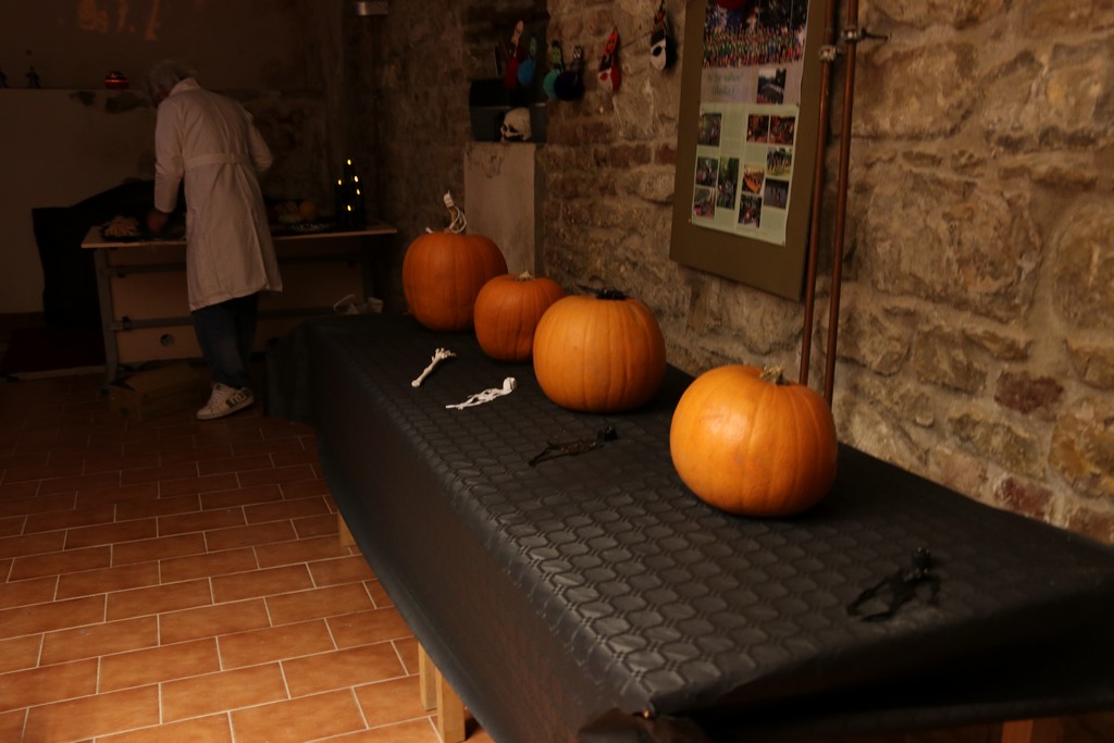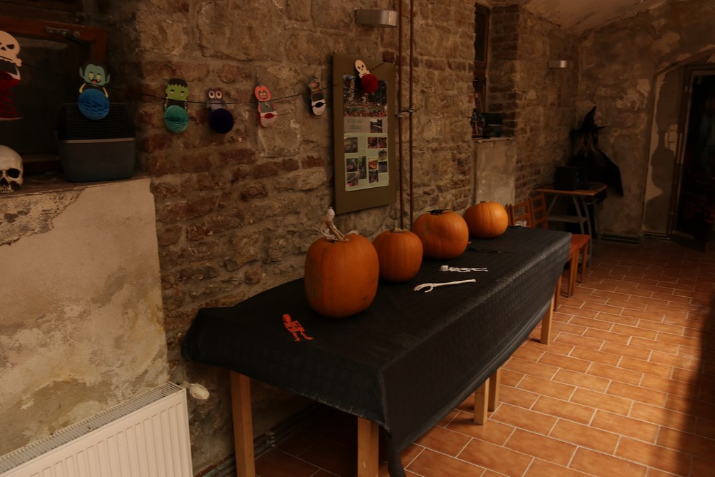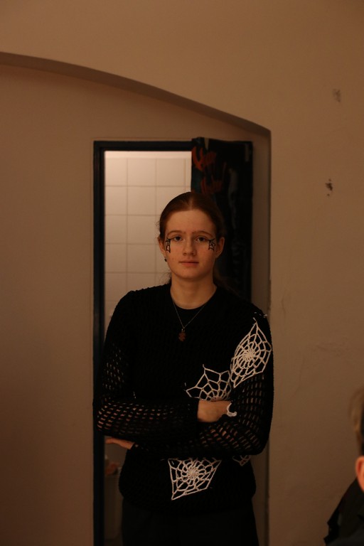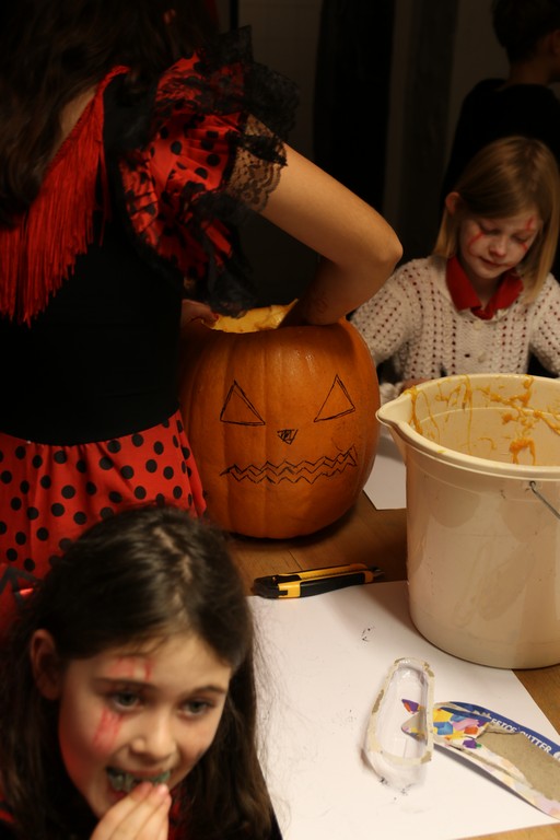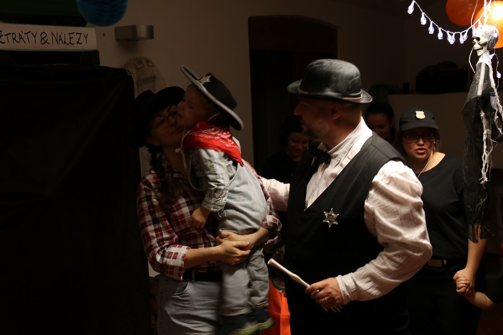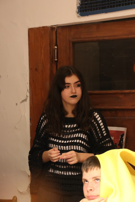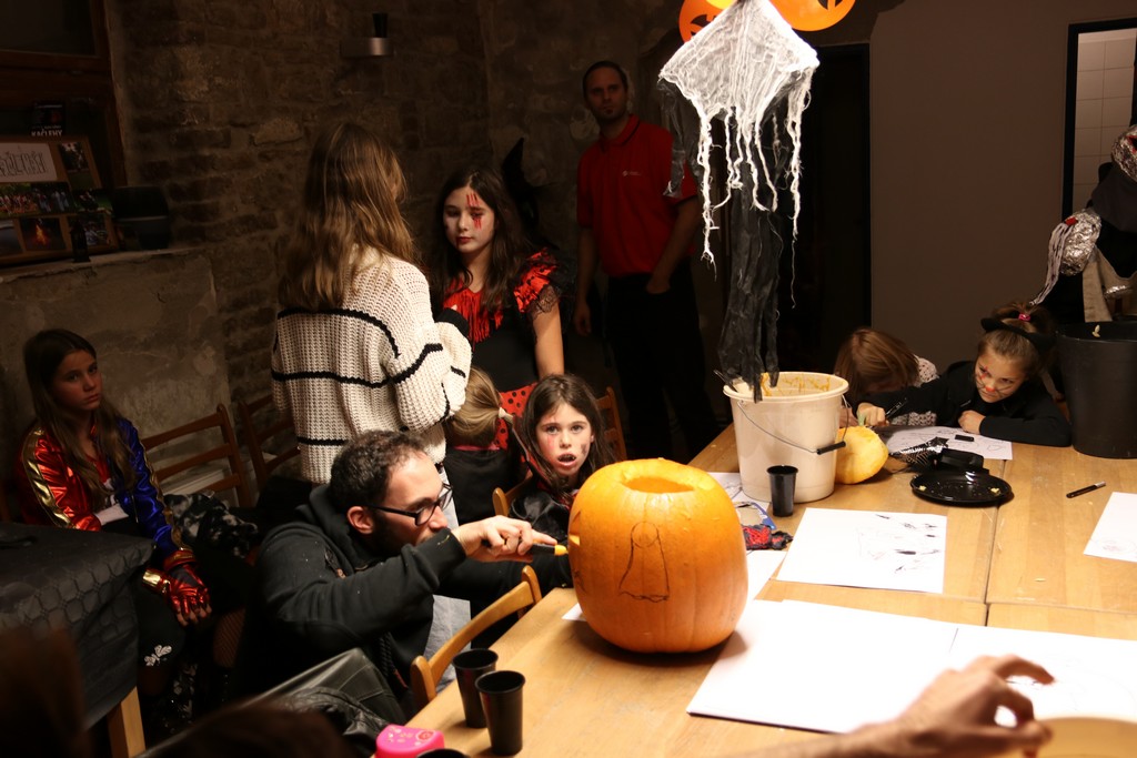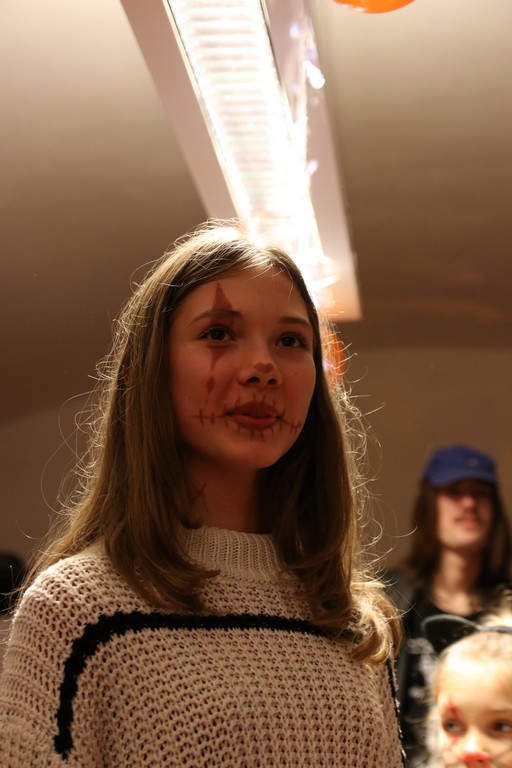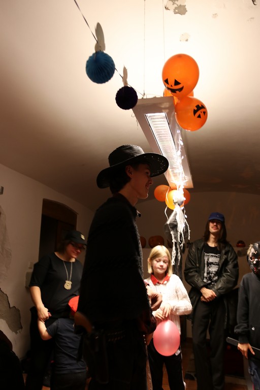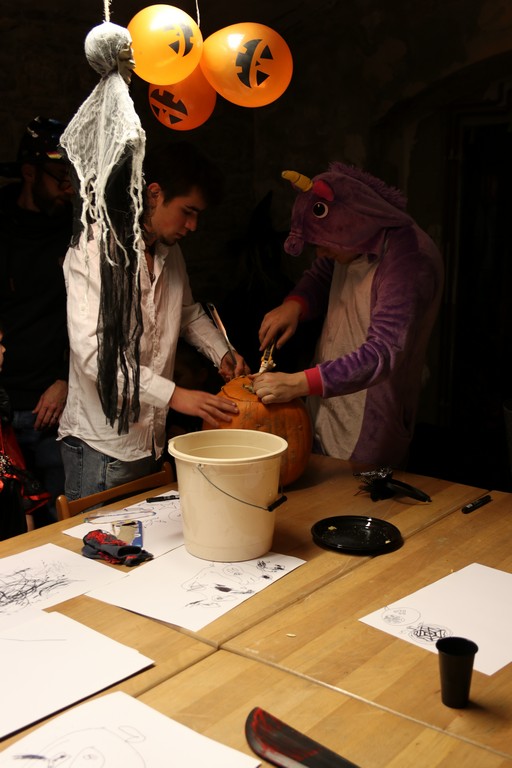 Je čtvrtá hodina odpolední posledního listopadového dne, a to znamená kamenický Halloween! Naše klubovna, která se proměnila v dům hrůzy, se plní různými strašidly a pohádkovými bytostmi. Samozřejmě není kam spěchat – za lehkého zvuku hudby je nejprve potřeba se připravit na přicházející program. K tomu napomáhá nepřeberné množství sladkostí a jídla i jakási červená kapalina, ve které plave cosi připomínající oční bulvy – budeme jen doufat, že svou zcela nápadnou podobnost pouze připomínají.