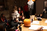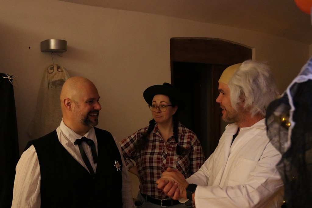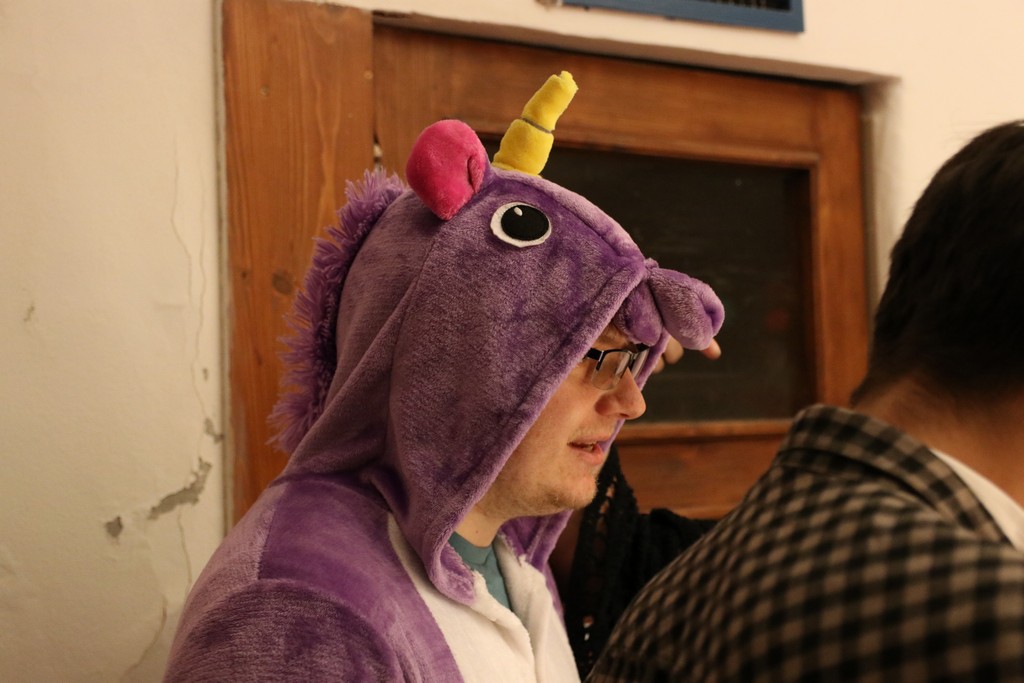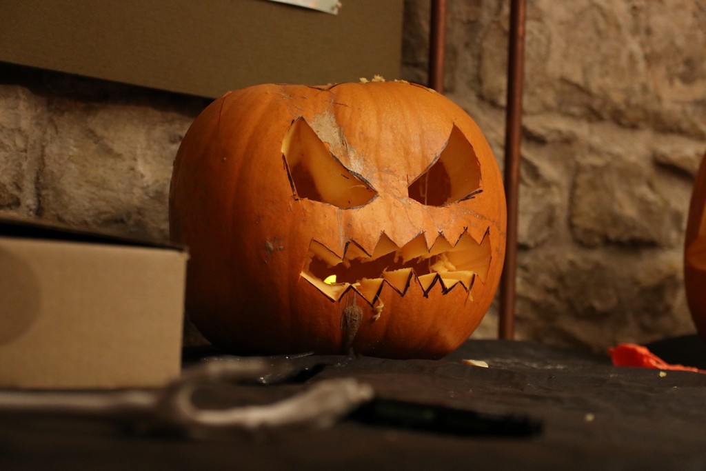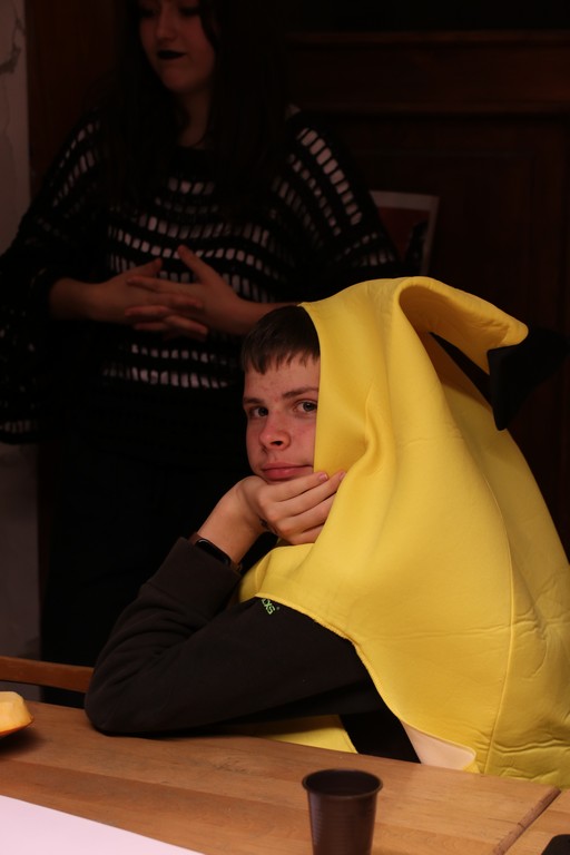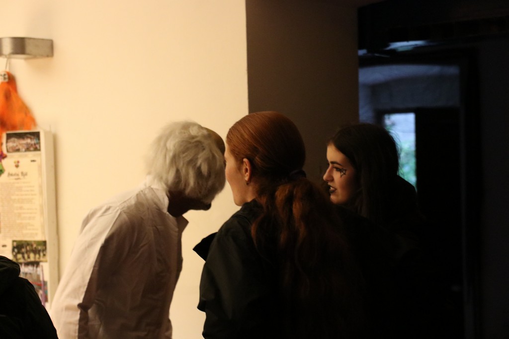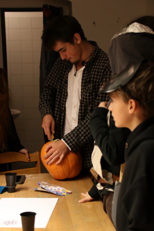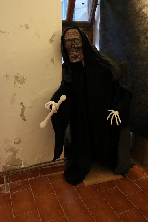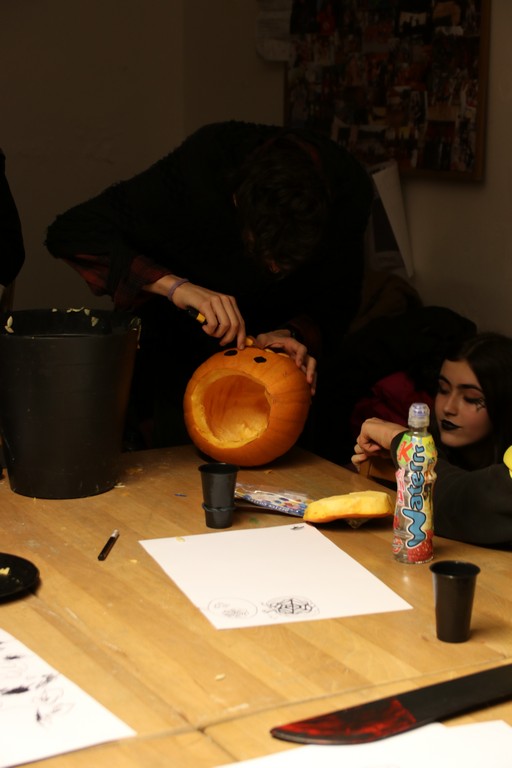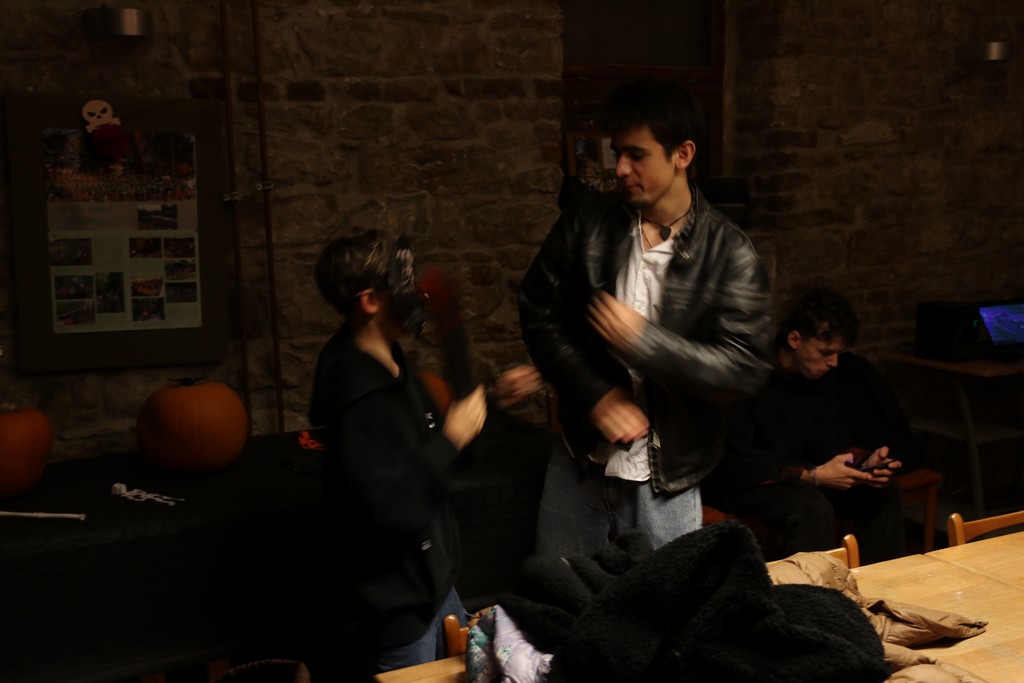 Je čtvrtá hodina odpolední posledního listopadového dne, a to znamená kamenický Halloween! Naše klubovna, která se proměnila v dům hrůzy, se plní různými strašidly a pohádkovými bytostmi. Samozřejmě není kam spěchat – za lehkého zvuku hudby je nejprve potřeba se připravit na přicházející program. K tomu napomáhá nepřeberné množství sladkostí a jídla i jakási červená kapalina, ve které plave cosi připomínající oční bulvy – budeme jen doufat, že svou zcela nápadnou podobnost pouze připomínají.