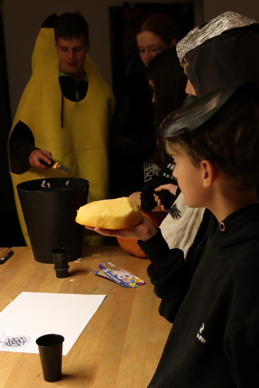K Halloweenu jistě neoddělitelně patří vydlabané dýně, proto se naši účastníci rozdělují do skupinek a připravují své dýně na soutěž o tu nejkrásnější. Zdánlivě nekonečné dlabání však nakonec dojde svého konce a přichází čas na vyhodnocení. K nečekanému výsledku byli naštěstí vedoucí připraveni – vyhrály všechny dýně, neboť byly skutečně úžasné! Všichni výherci si tak odnášejí cenu v podobě lízátka ve tvaru čarodějnického hnátu a přichází čas na vyhodnocení kostýmů. Kdo by to byl čekal že do naší klubovny přišli například klaun z To, víla Amálka, čarodějnice, Jiří Kára, Marty a doktor Emmett ze Zpátky do budoucnosti, a dokonce i desátý Doktor ze seriálu Doctor Who!