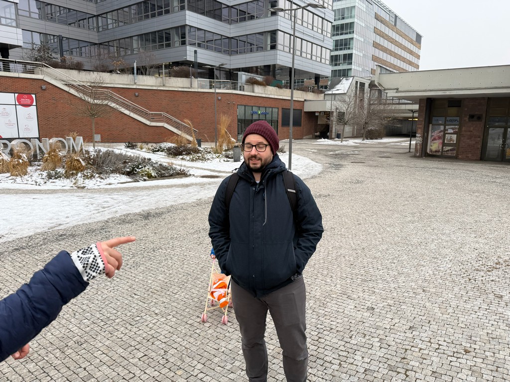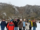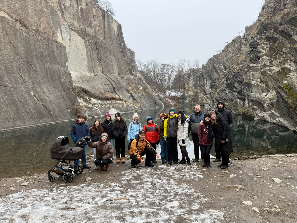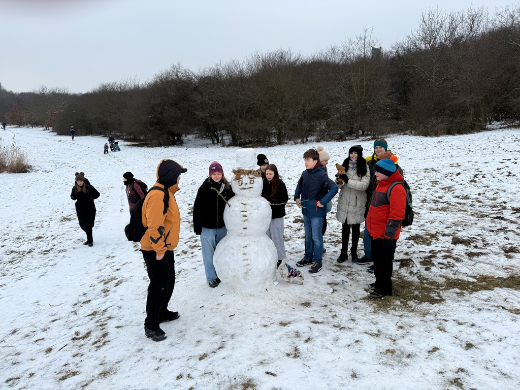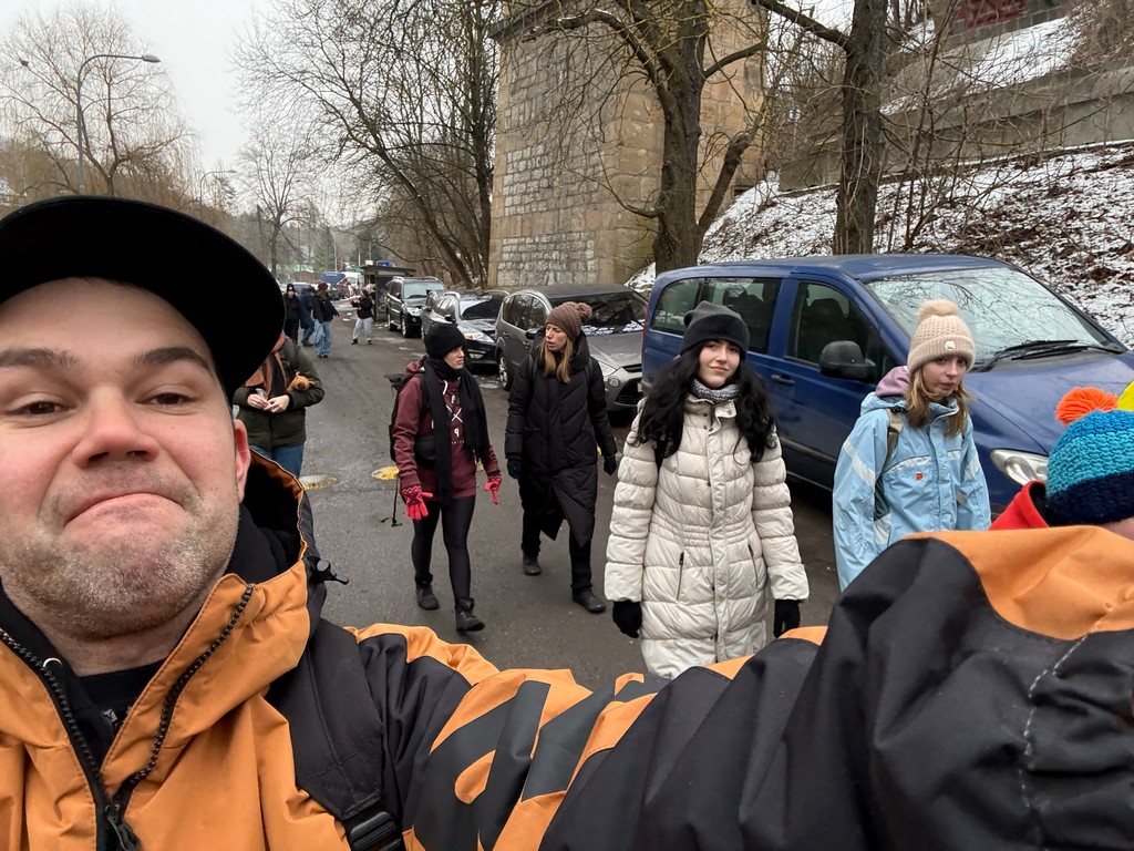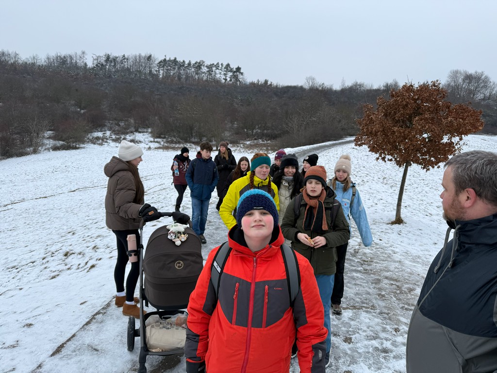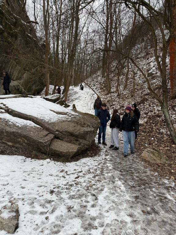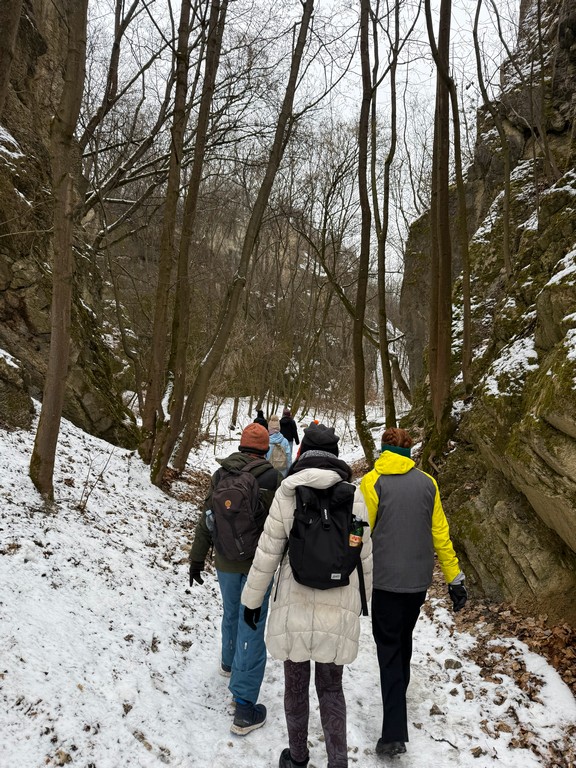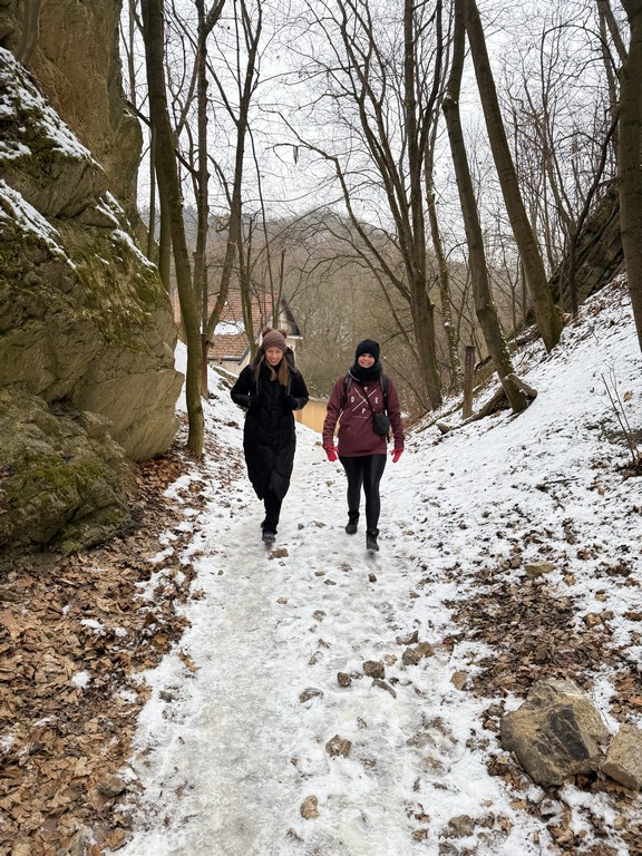Zpočátku naše trasa vedla obydlenou částí Prahy, ale postupem času jsme se dostávali do míst, kde příroda ukázala své kouzlo. Po cestě nás potkali nejen různí lidé, ale také sněhulák, se kterým jsme si udělali společnou fotku. Naše cesta dále směřovala Prokopským údolím, které lemovaly nádherné skály se třpytem sněhu všude, kam se člověk ohlédl. Tento úsek nebyl tak náročný z hlediska terénu, protože vedl celou dobu po silnici, ale trošku nám to komplikovala lehká námraza. Počasí nám ale i tak přálo. Nesněžilo ani nepršelo, zkrátka kolem nás proudil čerstvý zimní vzduch a s ním i pohodová a veselá atmosféra mezi námi.