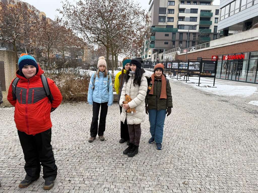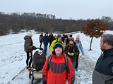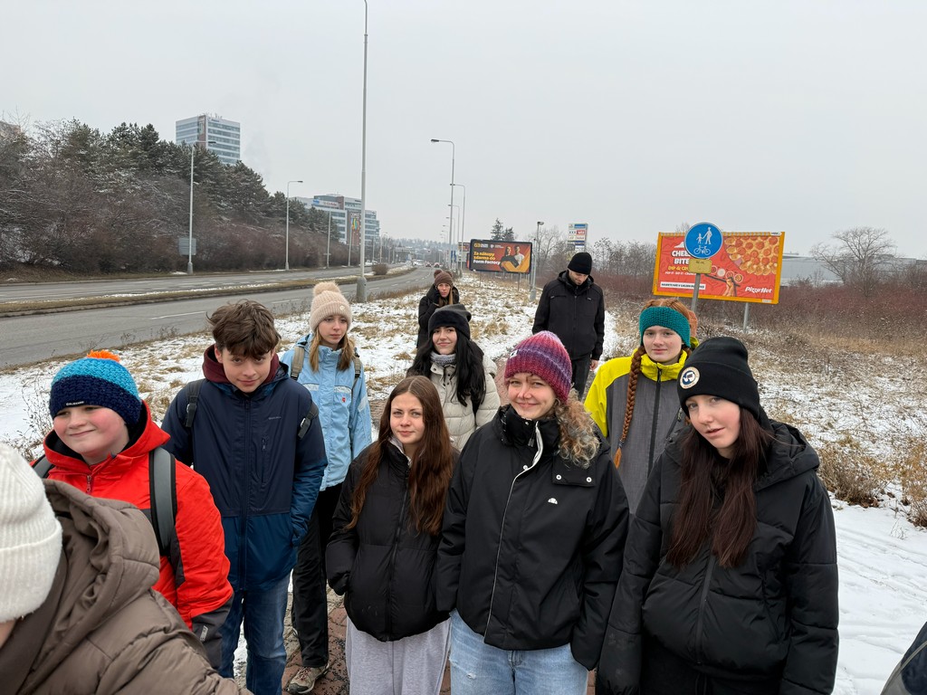 Sešli jsme se ráno v 10:00 u pomníku dukelských hrdinů, který se nachází nedaleko zastávky metra Nové Butovice. Když všichni, kdo se chtěli projít po pohádkově zasněžené krajině, dorazili, mohla naše menší skupina tvořená dětmi různého věku, rodiči, věrným psím kamarádem Sofinkou a samotným Šíšou vyrazit.